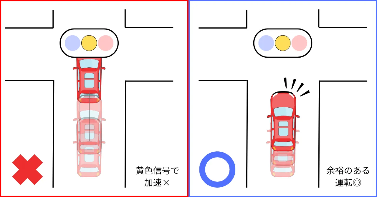 - 黄色信号では加速しない → 同乗者の安全を最優先する優しさ