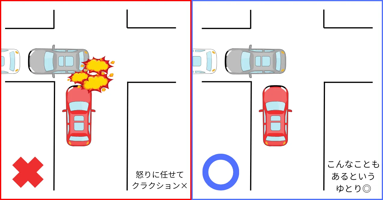 - 感情的にクラクションを鳴らさない → 冷静さと寛容さ